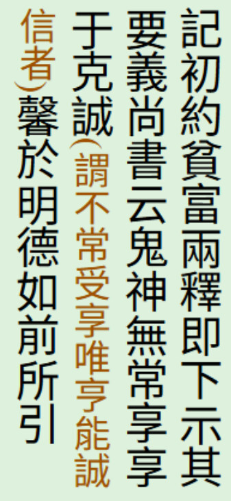 卷二 「記初約貧富兩釋即下示其要義尚書云鬼神無常享享于克誠(謂不常受享唯亨能誠信者)馨於明德如前所引」