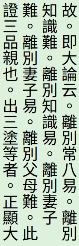 「即大論云。離別常八易。離別知識難。」考大智度論原文,應為「離別常人易」,「八」字是否為打字之誤?
