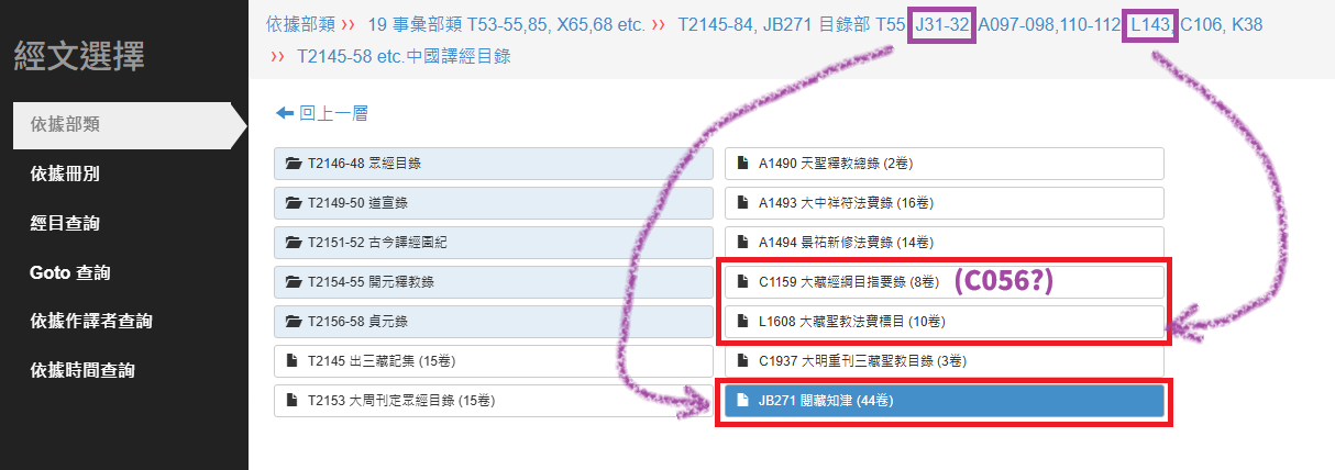以上是目前三部著作歸類(與冊別是否正確顯示)以及分類類別有出現冊別但未見著作連結現況