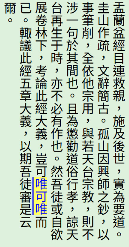可惜暫尋無本部文獻《山家義苑》卷下的對校資料。於 CBR 內搜尋「豈可唯可唯而已」僅本筆;搜尋「豈可唯唯而已」為 0 筆。